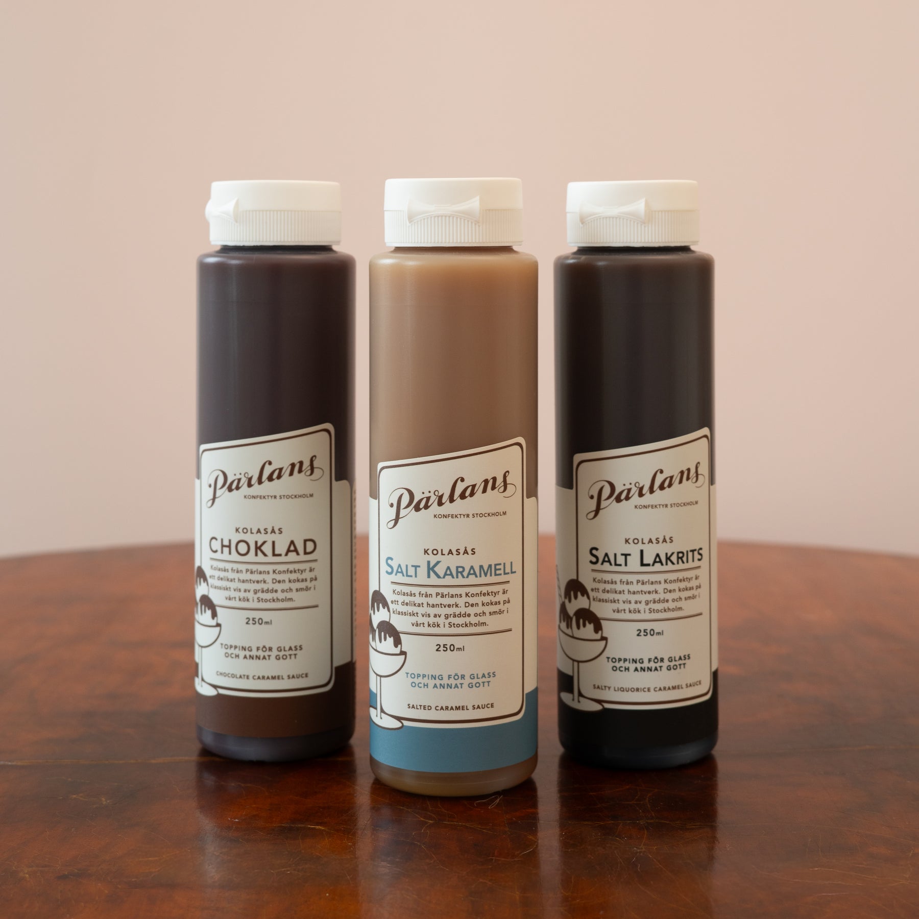 Kolasås från Pärlans Konfektyr är ett delikat hantverk, förgyll sommarens glass och dessert med någon av våra klassiska eller nya smaker.