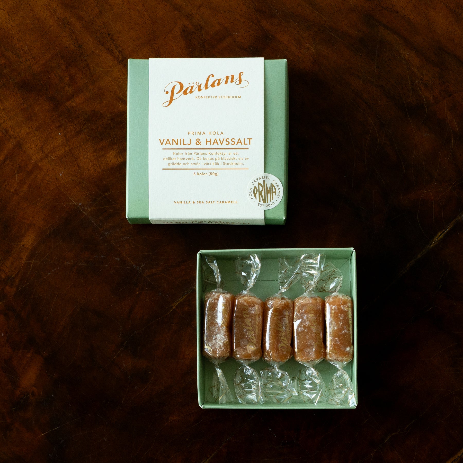 Klassisk salt smörkola - vanilj & havssalt, vår mest populära smak. Kokad på klassiskt vis i egen fabrik i Stockholm.